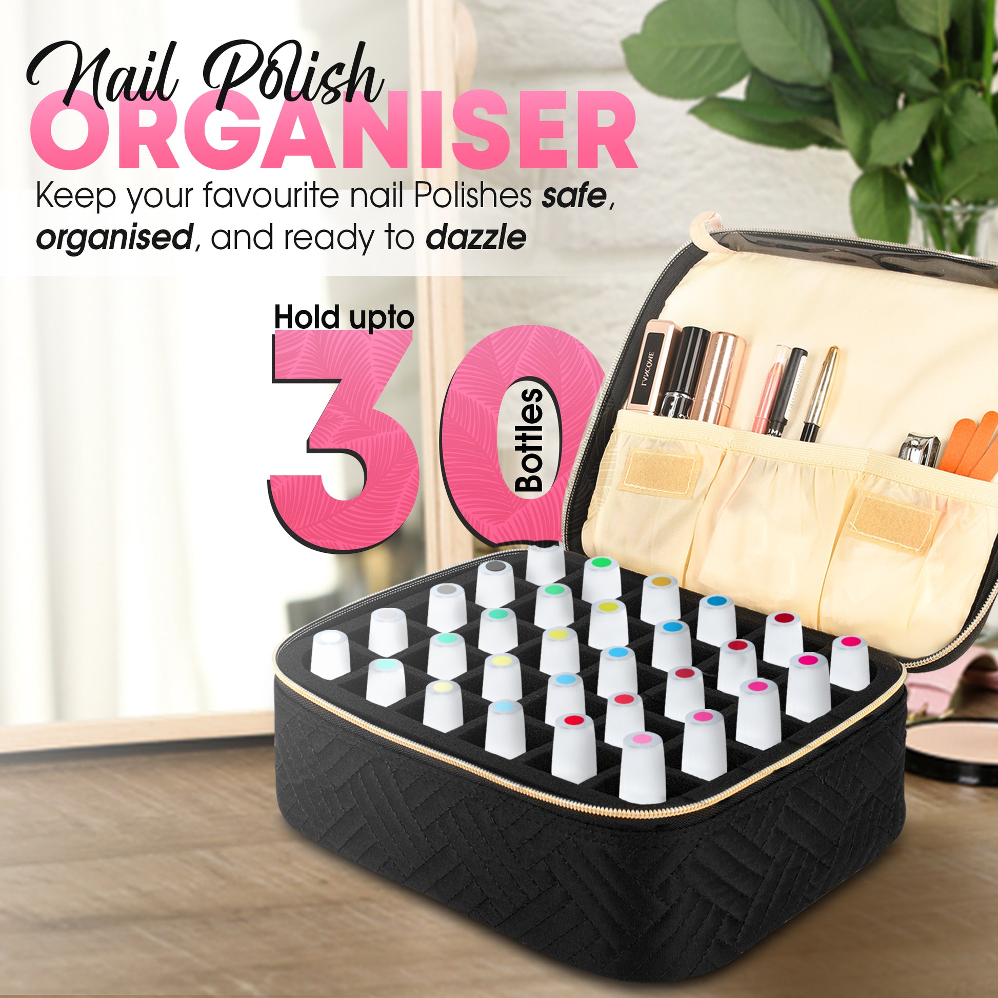 Declutter your nail space with the Obsessions Nail Polish Organiser Bag, the ultimate storage solution for every beauty lover. This stylish bag holds up to 30 nail polish bottles, keeping your collection neat, secure, and ready for action. But that’s not all - there’s plenty of room for makeup and other beauty accessories, making it your new versatile storage obsession!